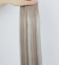 Cashmere Beige is a beautifully blended combination of ash brown (#5A) and light beige blonde (#1006), creating a soft, dimensional look with cool, natural tones. The smoky ash brown root adds depth and shadow, transitioned to a light beige blonde.